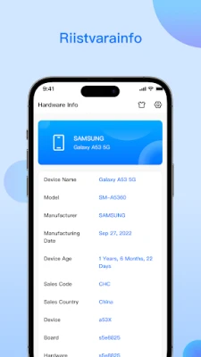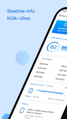 Seadme info annab põhjaliku ülevaate teie seadme riist- ja tarkvarast. Jälgige reaalajas protsessori, mälu, aku, andurite, salvestusruumi ja võrguandmeid. Käivitage riistvara teste, võrrelge seadmeid ja uurige süsteemi detailset infot. Hankige olulist teavet brändi, mudeli ja operatsioonisüsteemi kohta.